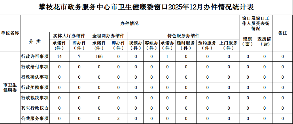 攀枝花市政务服务中心市卫生健康委窗口2025年12月办件情况统计表