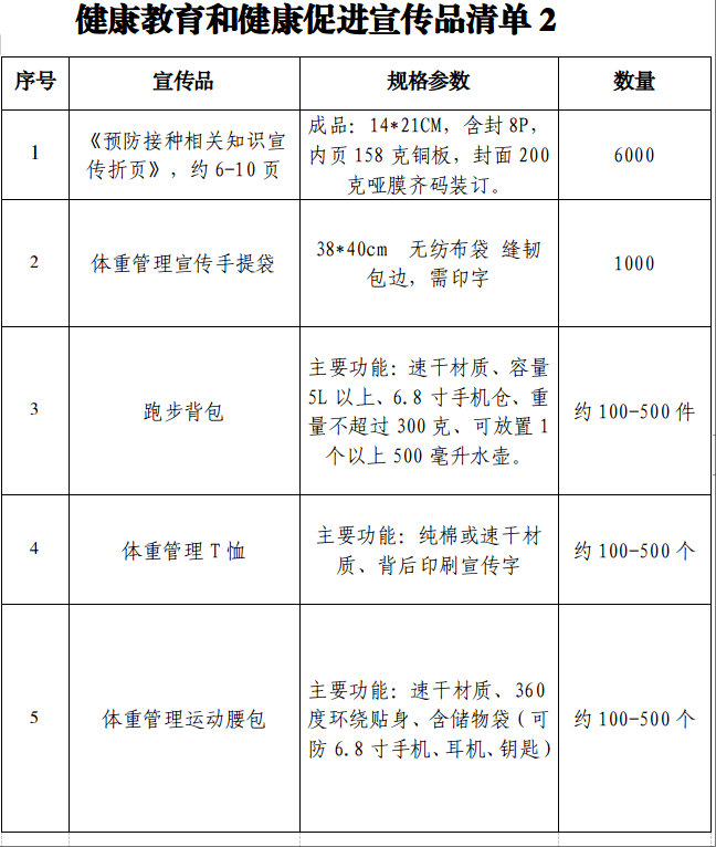 项目名称:健康知识宣传品采购项目。
