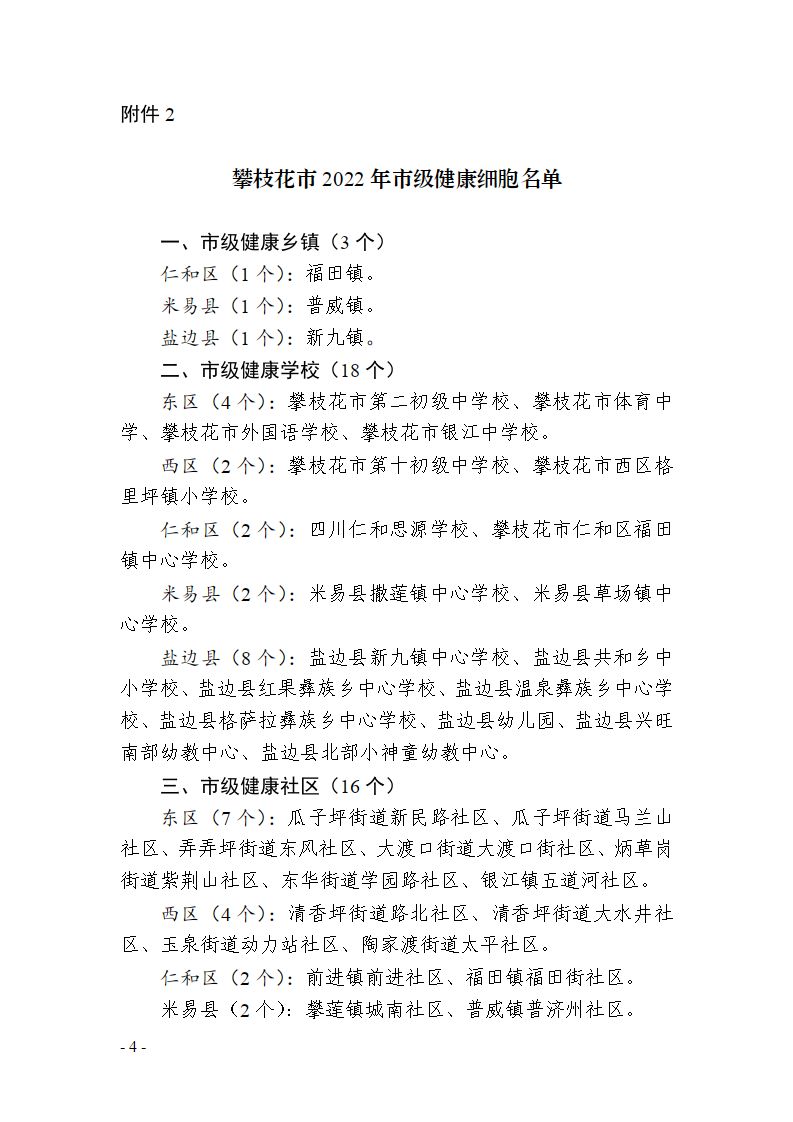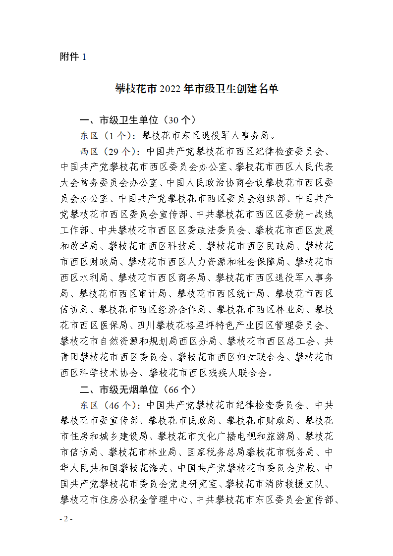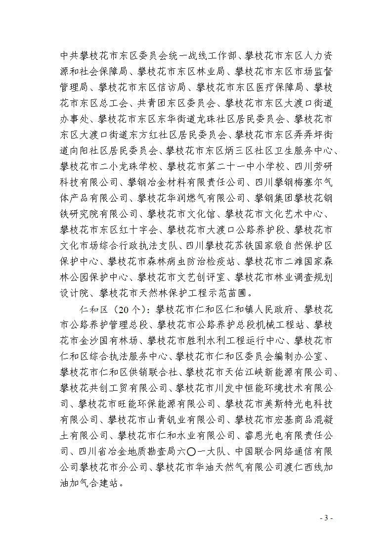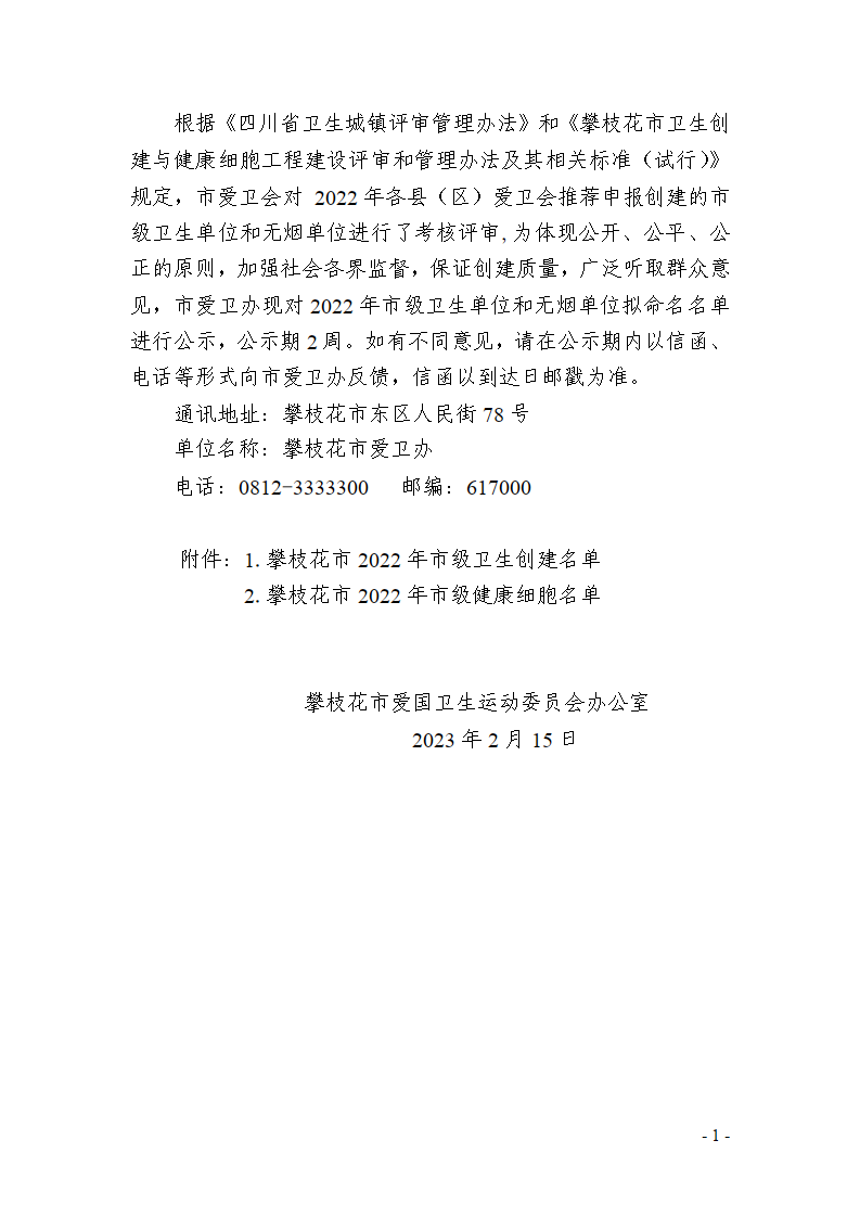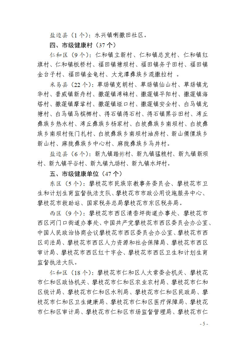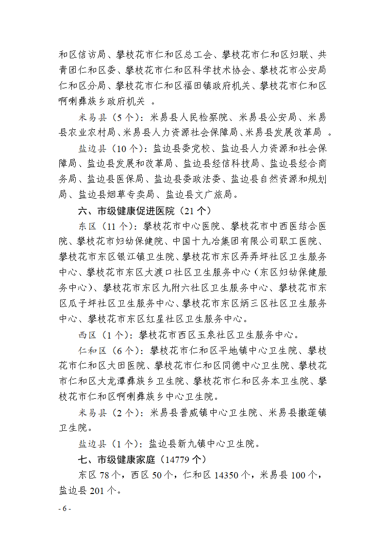 攀枝花市爱国卫生运动委员会办公室关于攀枝花市卫生创建和健康细胞建设名单的公示