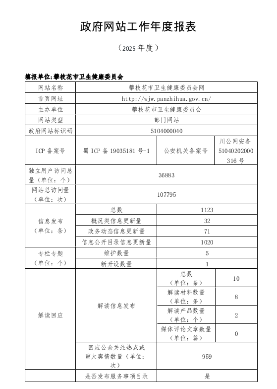 攀枝花市卫生健康委员会网站工作年度报表(2025年度)
