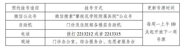 预约挂号:每周一上午10点起可预约下一周的号源。