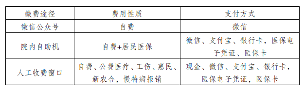 (4)医保病人及家属持《出院证》、费用清单先到医保审核窗口办理审核手续,再持《出院证》、费用清单、预收款收据、医保卡(医保病人)至出院窗口办理结算;自费患者持《出院证》、费用清单、预交款收据直接在出院窗口办理结算。